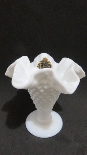 Title (ebay affiliate link): VINTAGE FENTON SMALL FLUTED MILK GLASS HOBNAIL RUFFLED TOP BUD VASE
