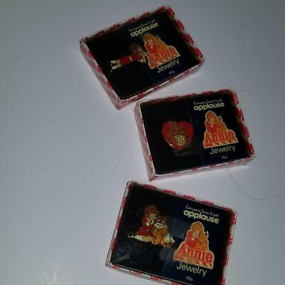 lot of 3 NIB Applause Little Orphan Annie & dog Sandy Jewelry pin 1982 new NOS