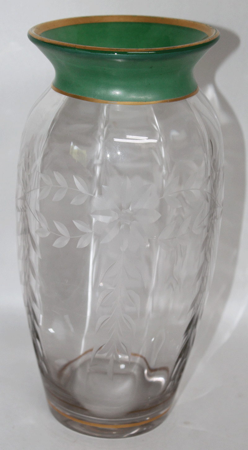 Antique ENGRAVED FLOWERS Vase GLASS Tall!