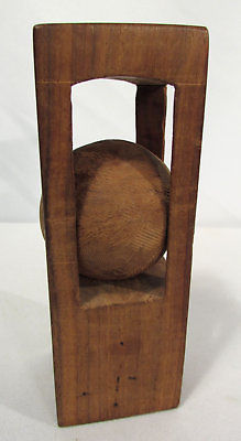 Vintage Ball Cage Wood Block Whimsey Walnut Hand Made Folk Art