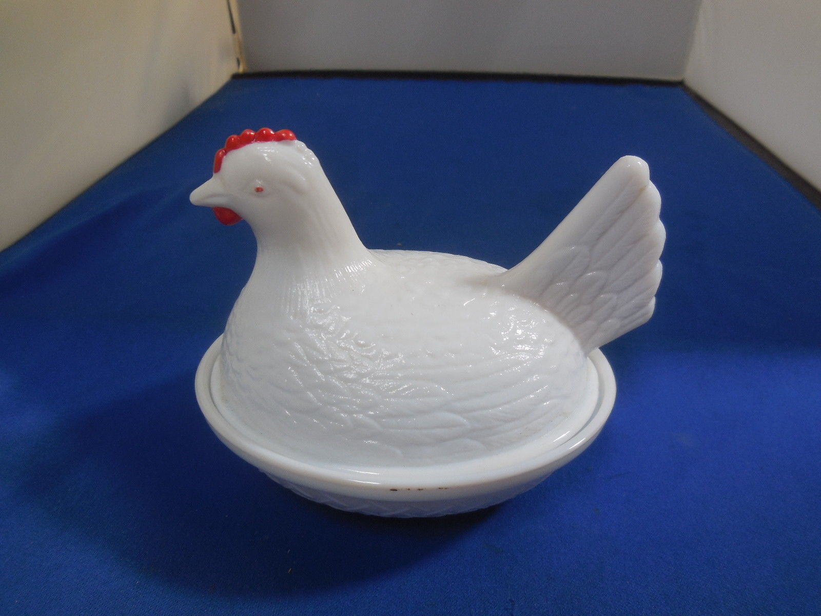 Vintage Milk Glass "Hen on a Nest" Red Comb