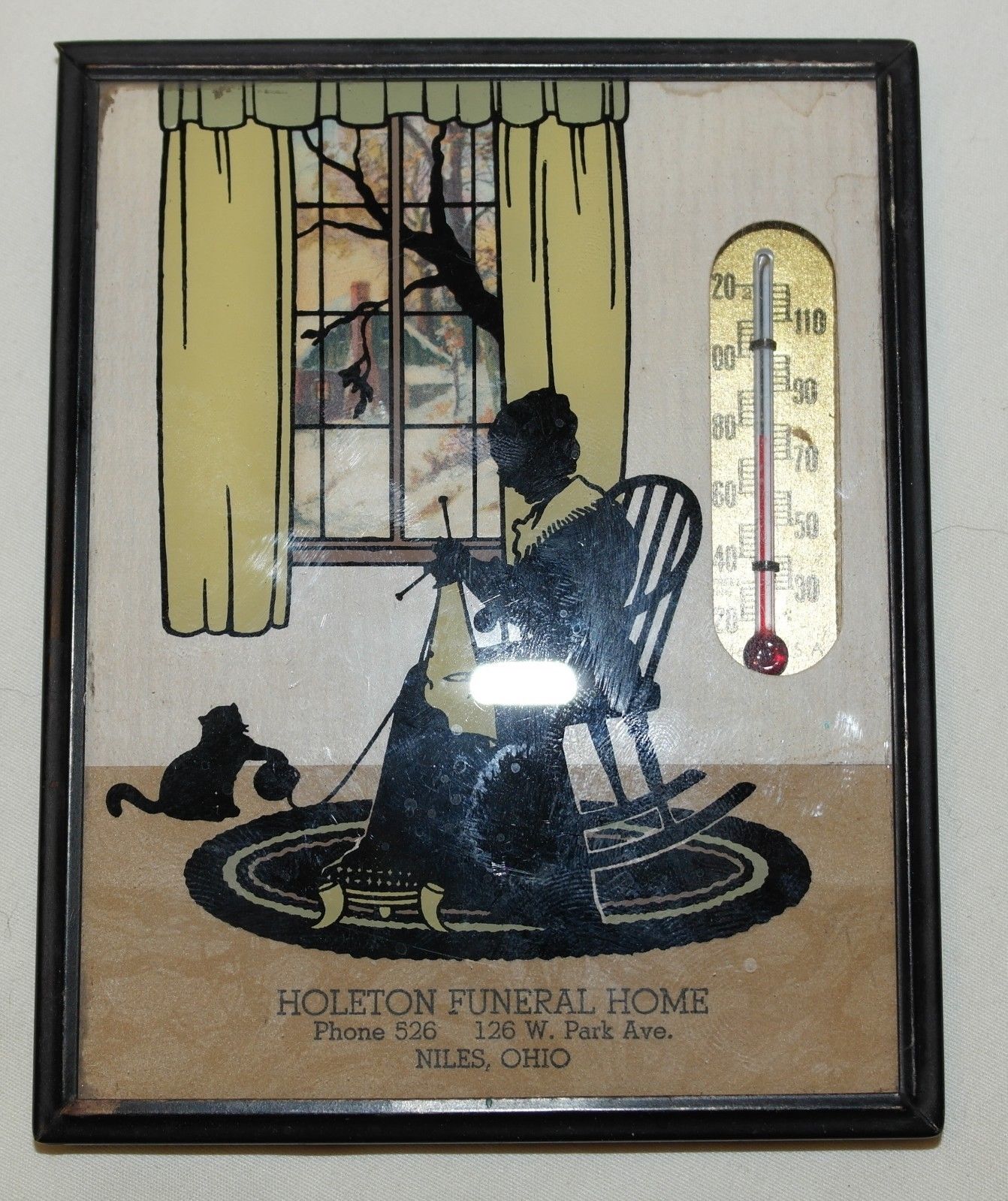 Vintage Holeton Funeral Home Niles Ohio Advertising Thermometer Reverse Painted