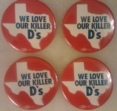 Title (ebay affiliate link): Four Texas We Love Our Killer D's" Campaign Pinbacks