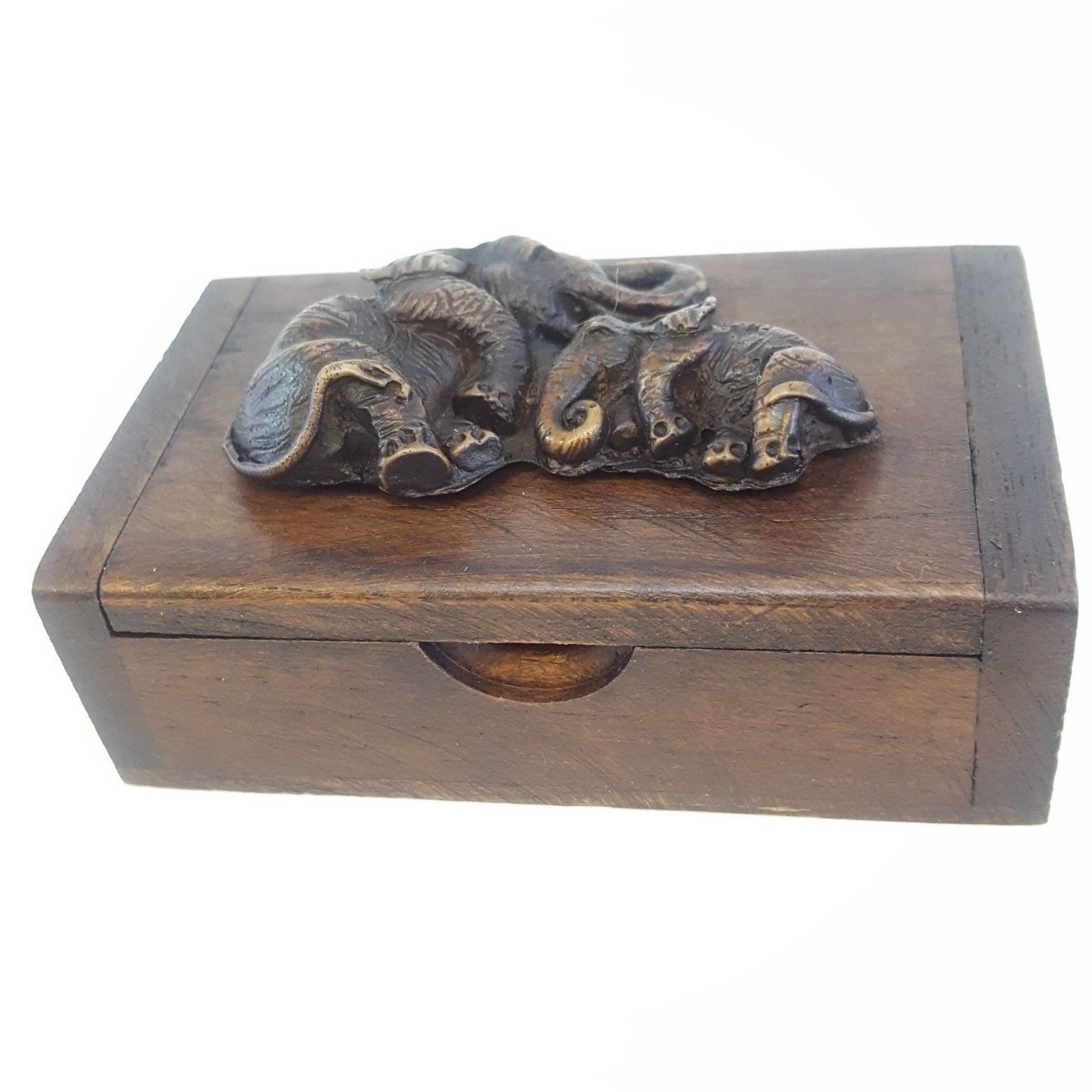 Box Elephant Holder Wooden Treasure Chest Jewelry Teak Wood Thailand Handmade