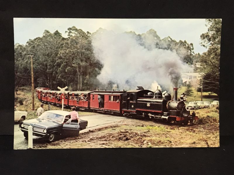 Title (ebay affiliate link): Vintage Postcard PUFFING BILLY, DANDENONG RANGES Steam Train + Holden HD, 1960s