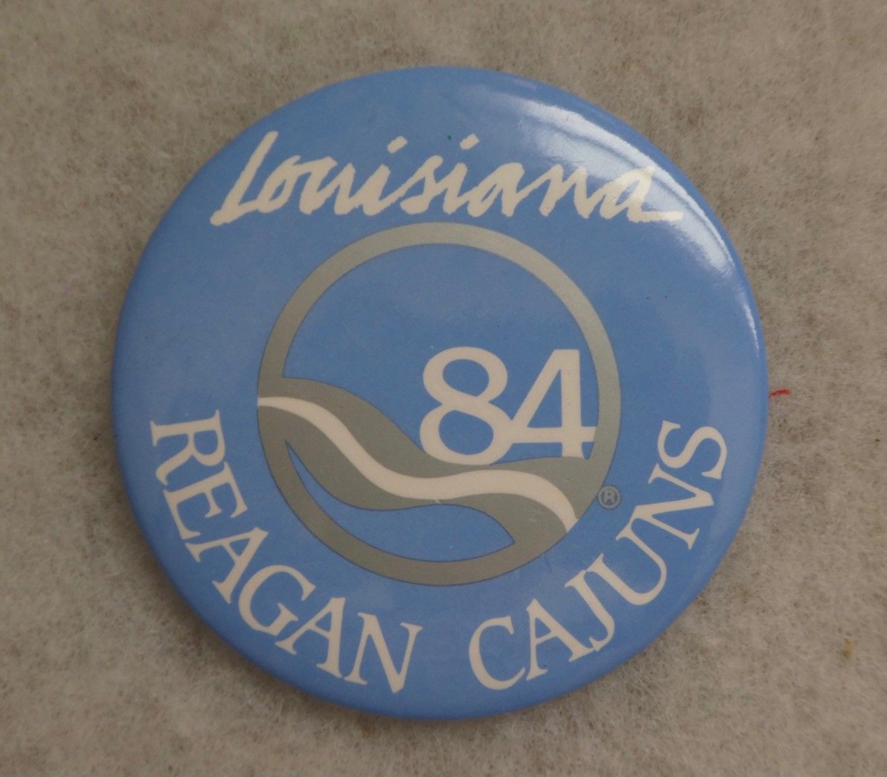 Title (ebay affiliate link): VINTAGE 1984 "REAGAN CAJUNS" LOUISIANA 84 CAMPAIGN BUTTON