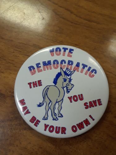 Title (ebay affiliate link): Vintage~"Vote Democratic The ASS You Save May be Your Own!"~ Pin/Button