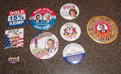 Title (ebay affiliate link): Lot of 9 BOB DOLE Presidential Campaign Buttons Pins US