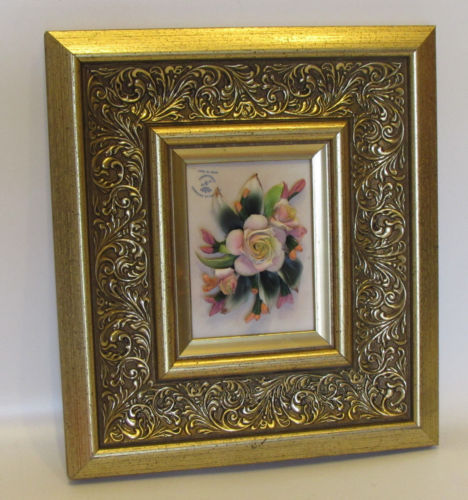 Title (ebay affiliate link): Italian Hand Painted 3D Picture Capodimonte Porcelain Flowers in Frame