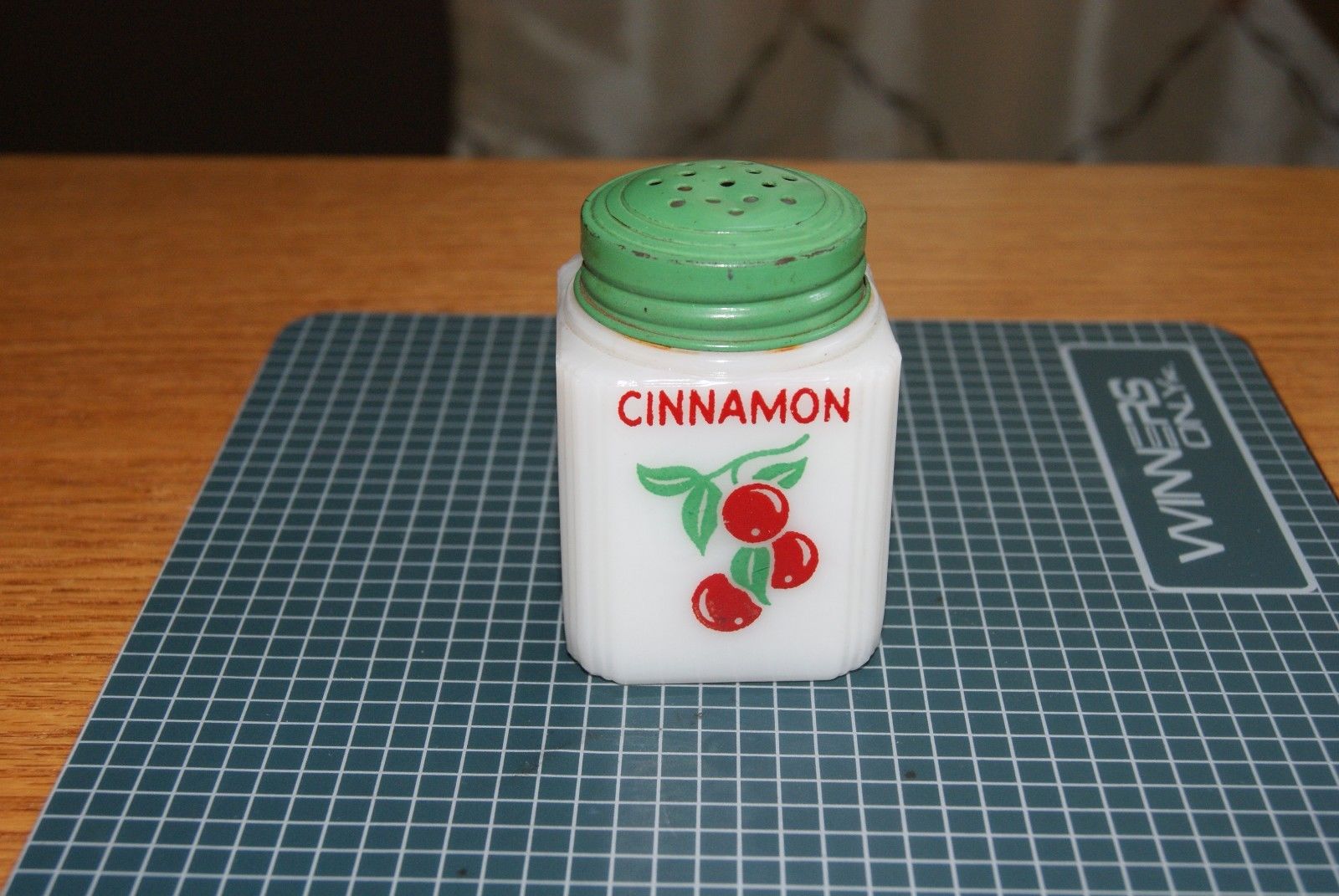 Title (ebay affiliate link): Vintage Milk Glass Tipp Cinnamon Shaker with Cherry''s graphic