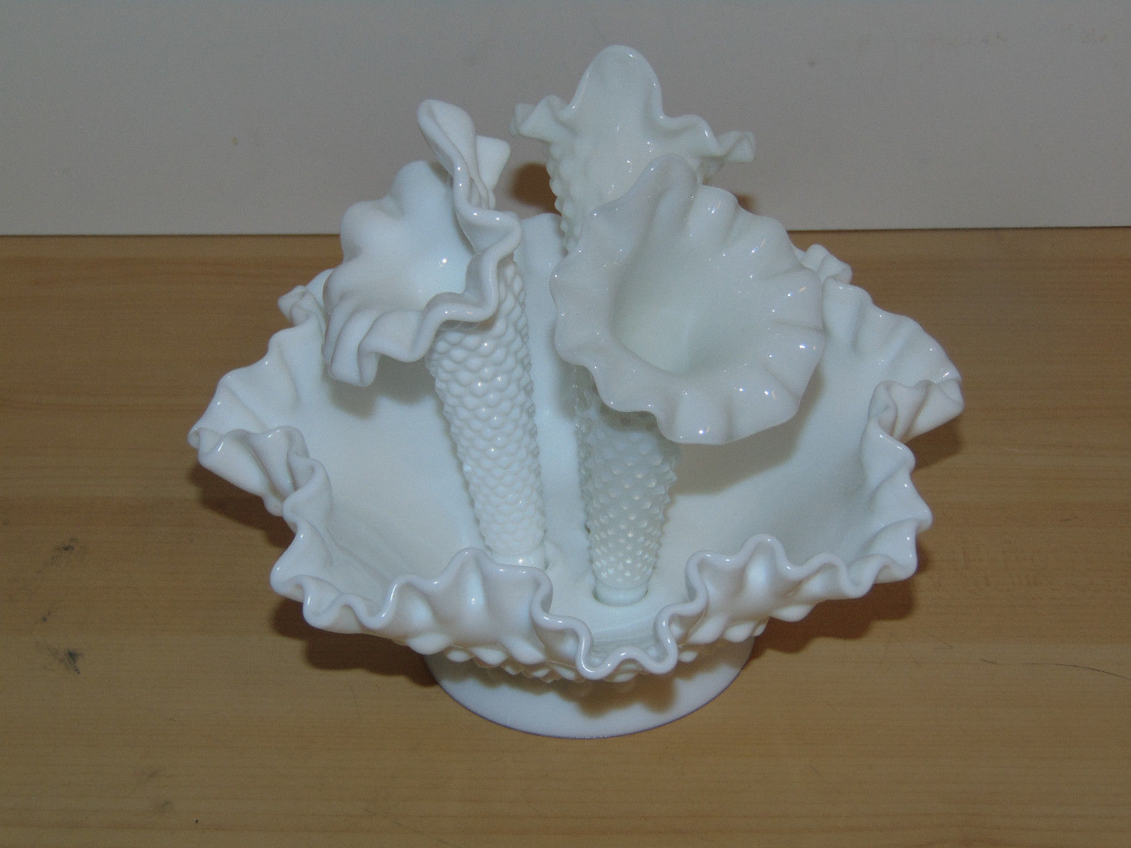 Title (ebay affiliate link): Vintage Fenton Three Horn Milk Glass Hob Nail Epergne-VG Condition