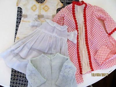 Lot of 3 Antique or Vintage Doll Dresses & Antique Baby Sweater