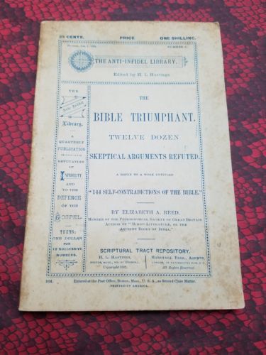 Title (ebay affiliate link): THE ANTI-INFIDEL LIBRARY - Bible Triumphant Arguments Refuted E.A. REED 1892