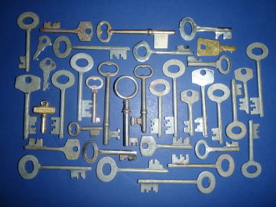 Antique Vintage old skeleton key lot furniture lock box