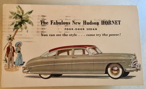 Title (ebay affiliate link): The Fabulous New Hudson Hornet Four Door Sedan 1952 Stamp Vintage Postcard