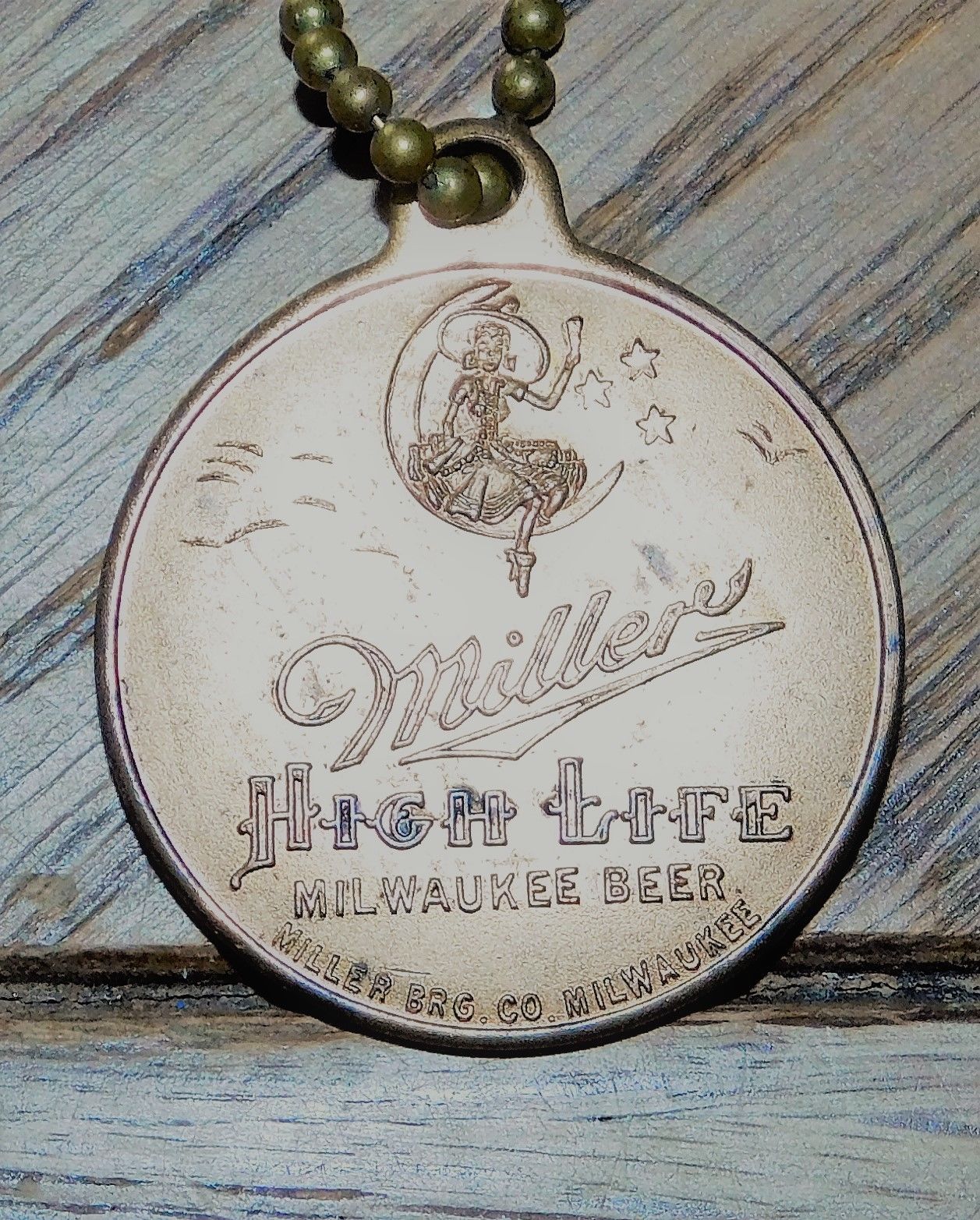 Title (ebay affiliate link): Vintage Metal Miller High Life Advertising Key Chain Girl on the Moon.