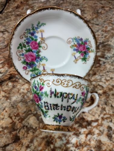 Vintage Enesco " Happy Birthday" Tea Cup and Saucer