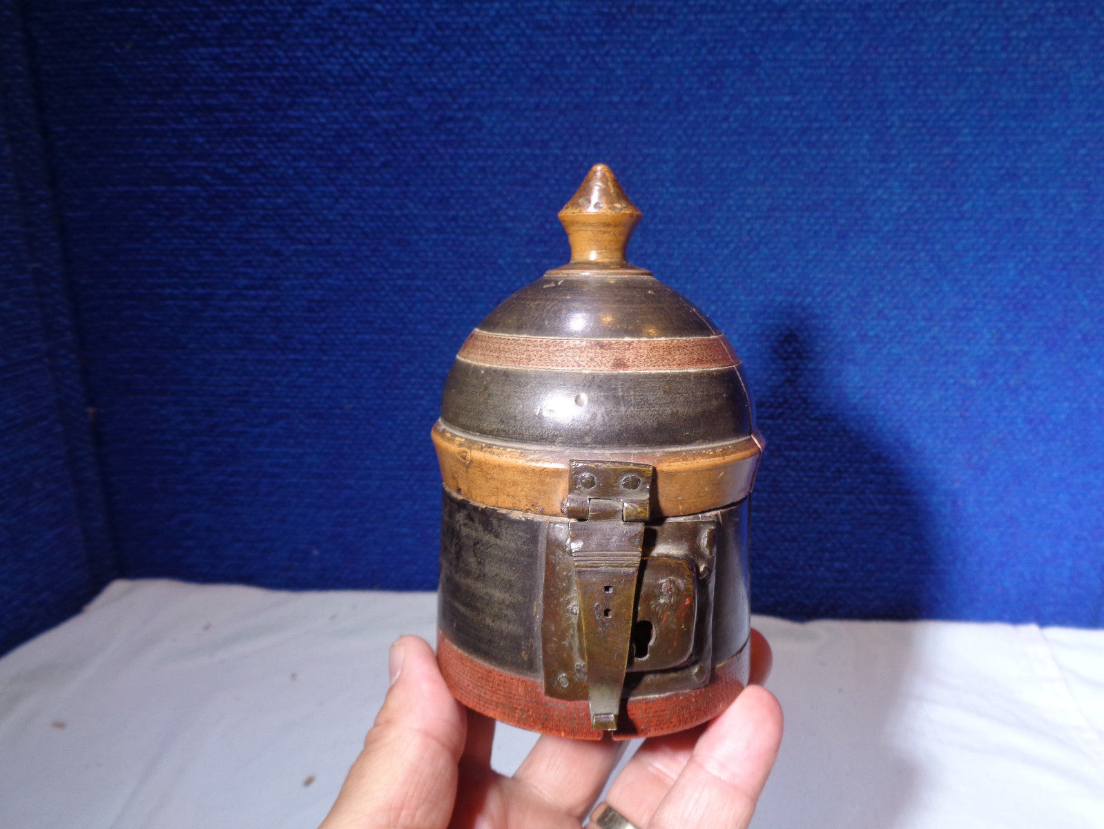 Primitive Painted Treen Jar Tea Cady Lidded Box Container