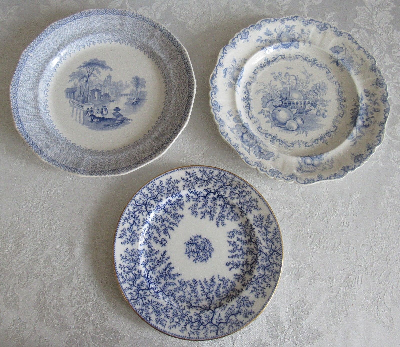 Title (ebay affiliate link): (3) Antique Staffordshire Blue Transferware Plates Minton, Fruit Basket, Cassino