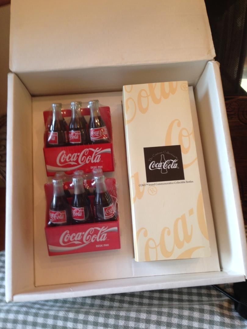 Title (ebay affiliate link): Rare Coca-Cola Commemorative Folk Art bottle and 2 souvenir desk sets
