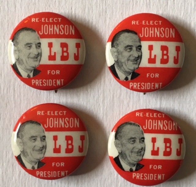 Title (ebay affiliate link): Four 7/8" Re-Elect LBJ for President Campaign Pin Buttons