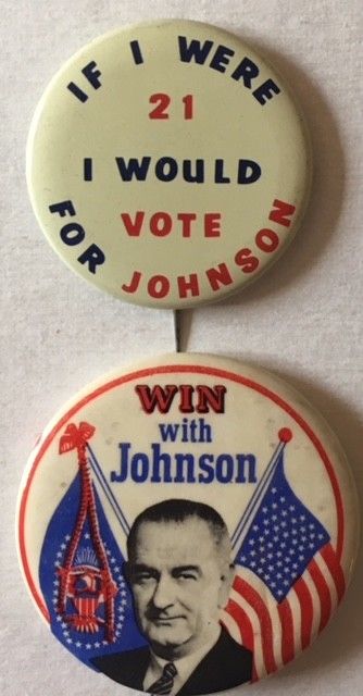 Two LBJ Presidential Political Campaign Pin Buttons