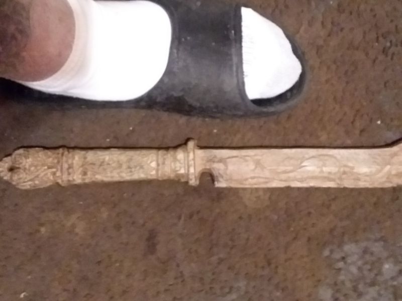 ancient benzentine iron inscripted greek symnolic ceremonial round knife...