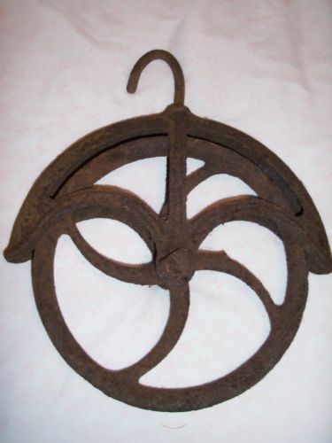 Title (ebay affiliate link): Antique Cast Iron Water Well Pulley Wheel Vintage Barn Farm 9" Diameter