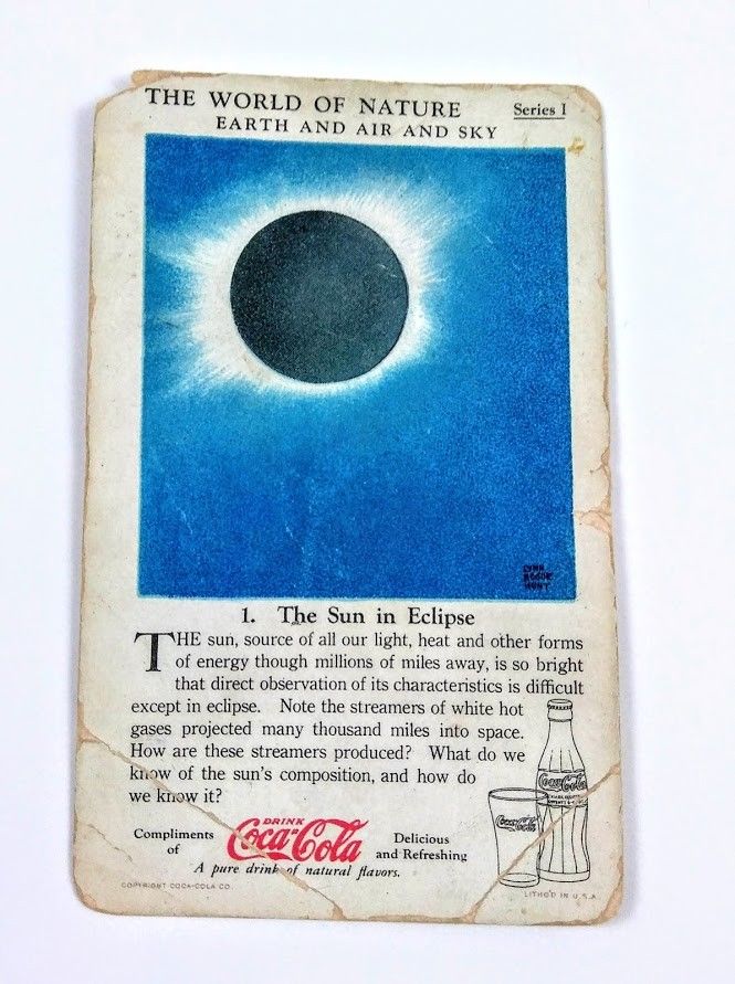 Title (ebay affiliate link): 1930 Coca Cola~The World of Nature~Earth and Sky~#1 The Sun in Eclipse~Series 1