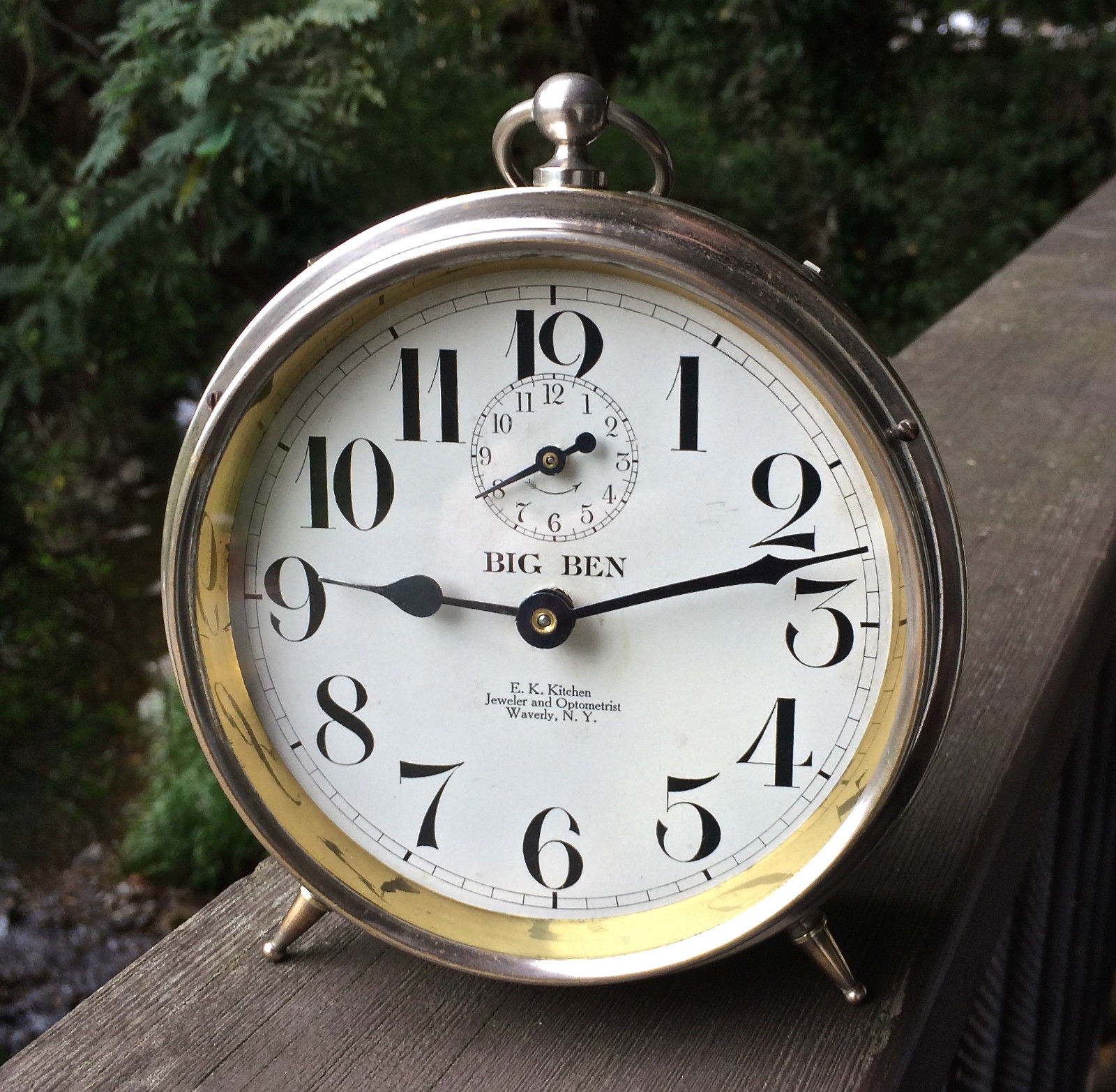 Title (ebay affiliate link): Antique Westclox BIG BEN Alarm Clock Peg Leg Jeweler Ad. Working, Clean In & Out
