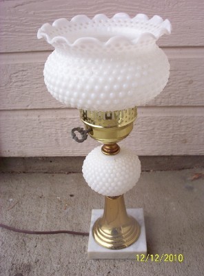 Vintage White Milk Glass Hobnail Table Lamp