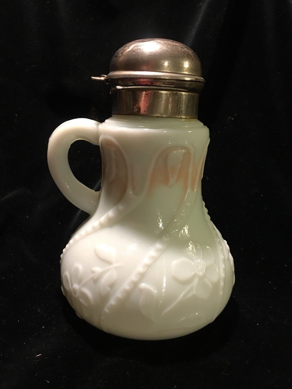 Title (ebay affiliate link): RARE 1800"S BEADS & FLOWERS PATTERN SYRUP IN WHITE MILK GLASS - 140 YEARS OLD