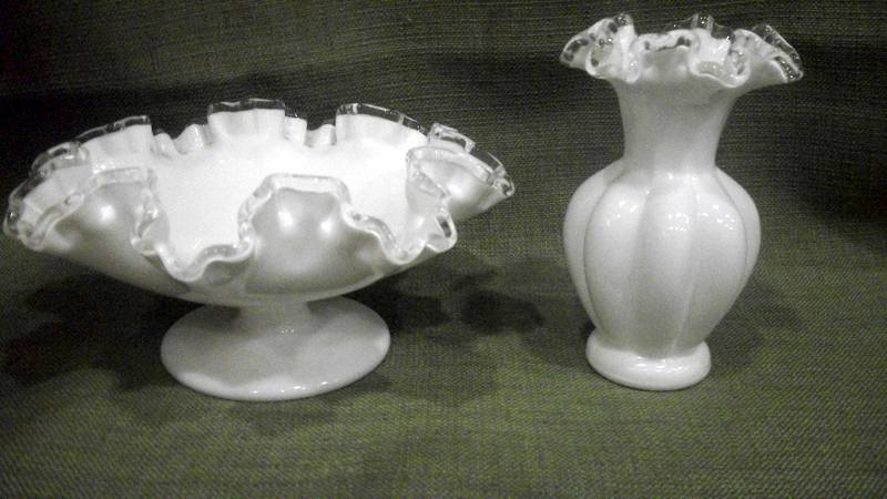Vintage Fenton Milk Glass COMPOTE & VASE