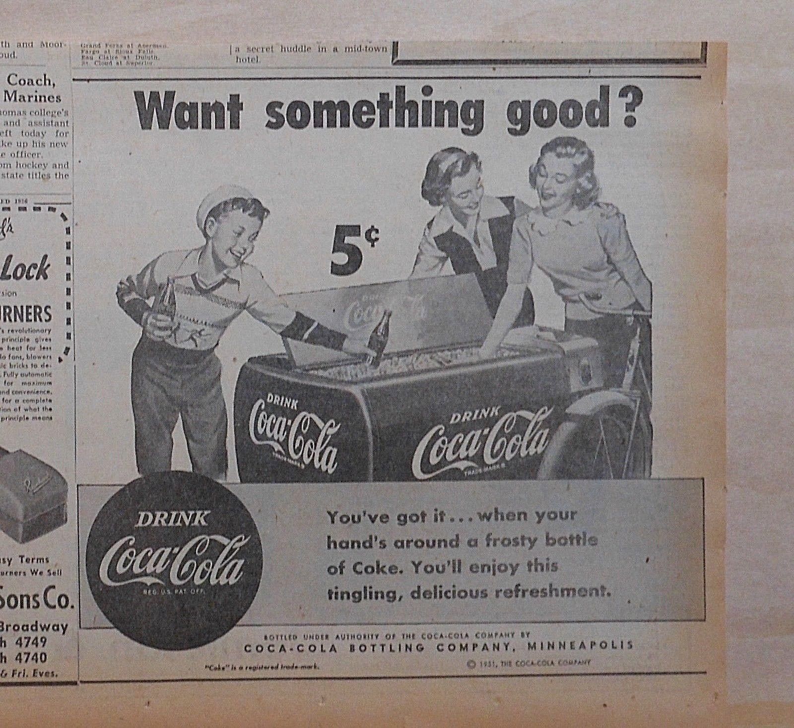 Title (ebay affiliate link): 1951 newspaper ad for Coca-Cola - Kids get Cokes from Coca-Cola cooler