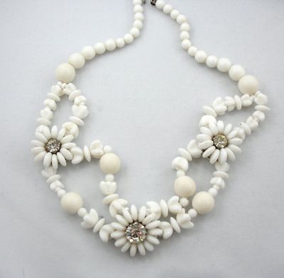 Vintage Milk Glass Clear Rhinestone Choker Necklace