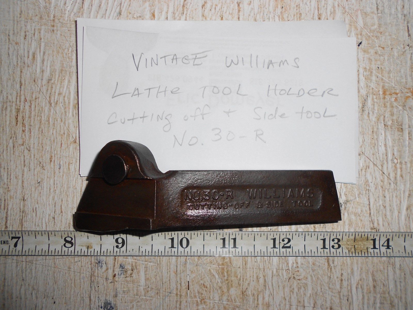 Title (ebay affiliate link): Williams Lathe tool holder No.30 R-Vintage Machinist tool- cutting off & side