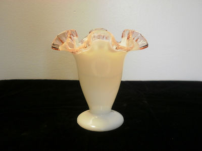 Fenton Milkglass Pink Crest Ruffled Top Vase.