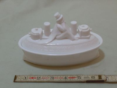 Antique Uncle Sam on BattleShip Milk Glass Mustard Dish