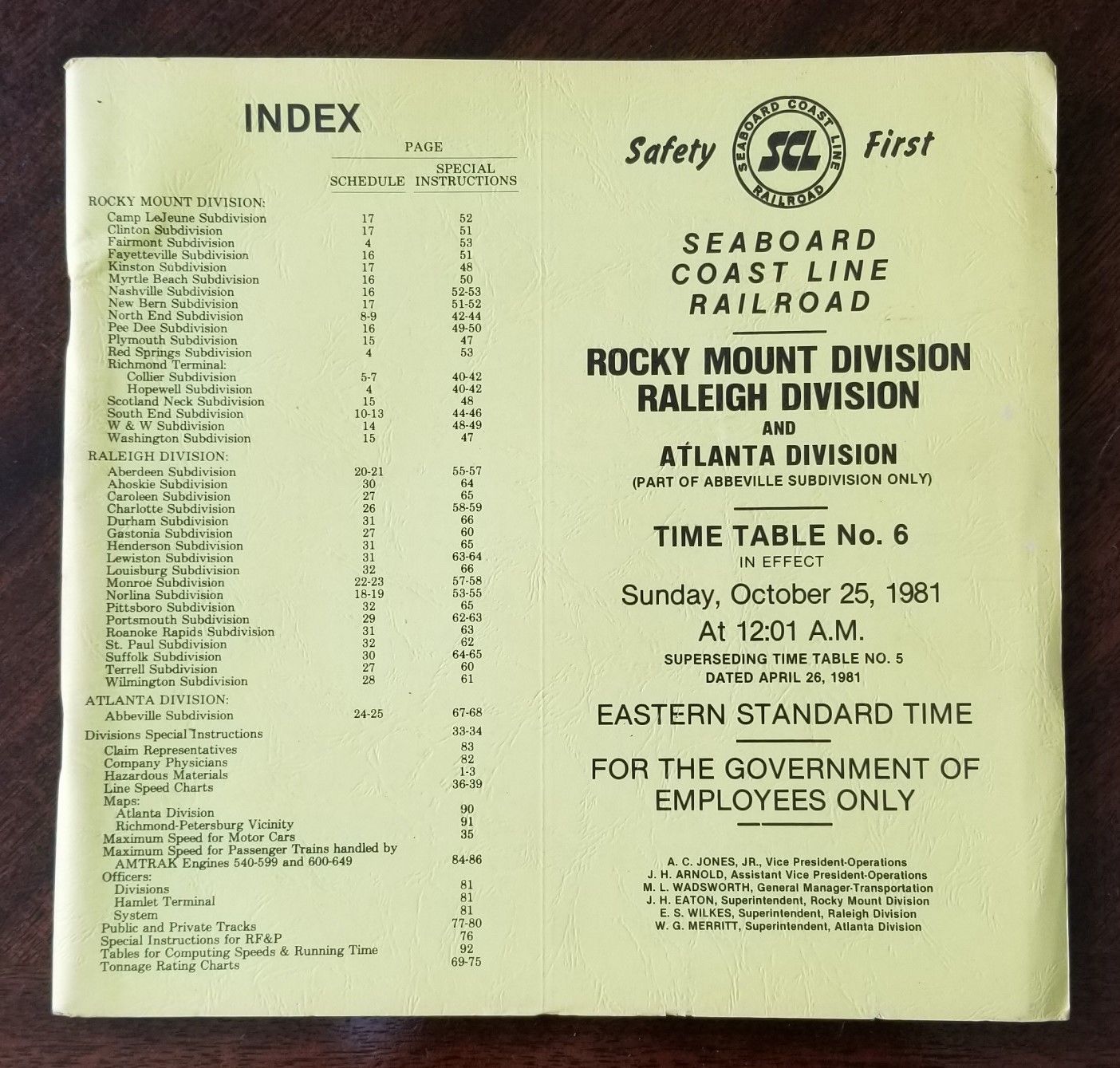 Title (ebay affiliate link): Seaboard Coast Line Railroad TT #6 Rocky Mount, Raleigh, Atlanta Div. 1981