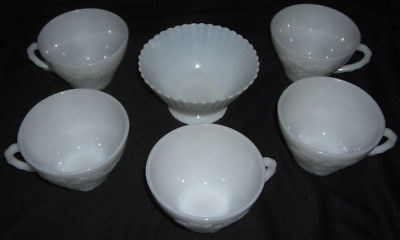 5 ANCHOR HOCKING MILK GLASS LEAF & GRAPE PUNCH CUP's ++