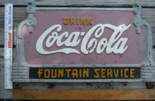 DRINK COCA-COLA FOUNTAIN SERVICE Vintage Cast Iron Sign Retro Art Deco