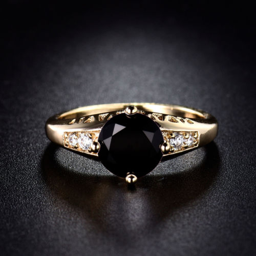 Title (ebay affiliate link): Women gold plated black sapphire crystal Solitaire antique engagement rings 5/J