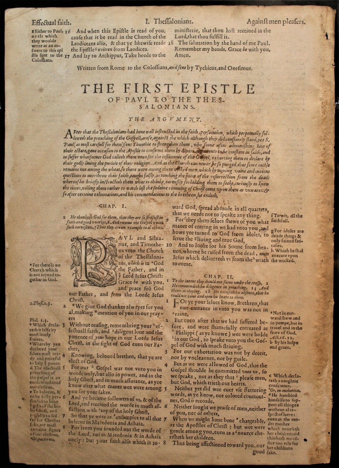 Title (ebay affiliate link): 1582 Geneva Bible Leaf Reformation ~First Epistle to the Thessalonians~
