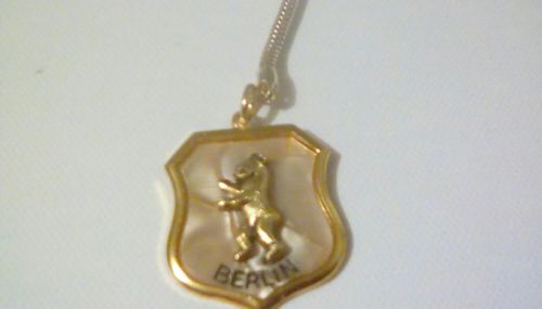 vintage BERLIN keychain key chain ring fob Lot KC17 mother of pearl inlay bear?