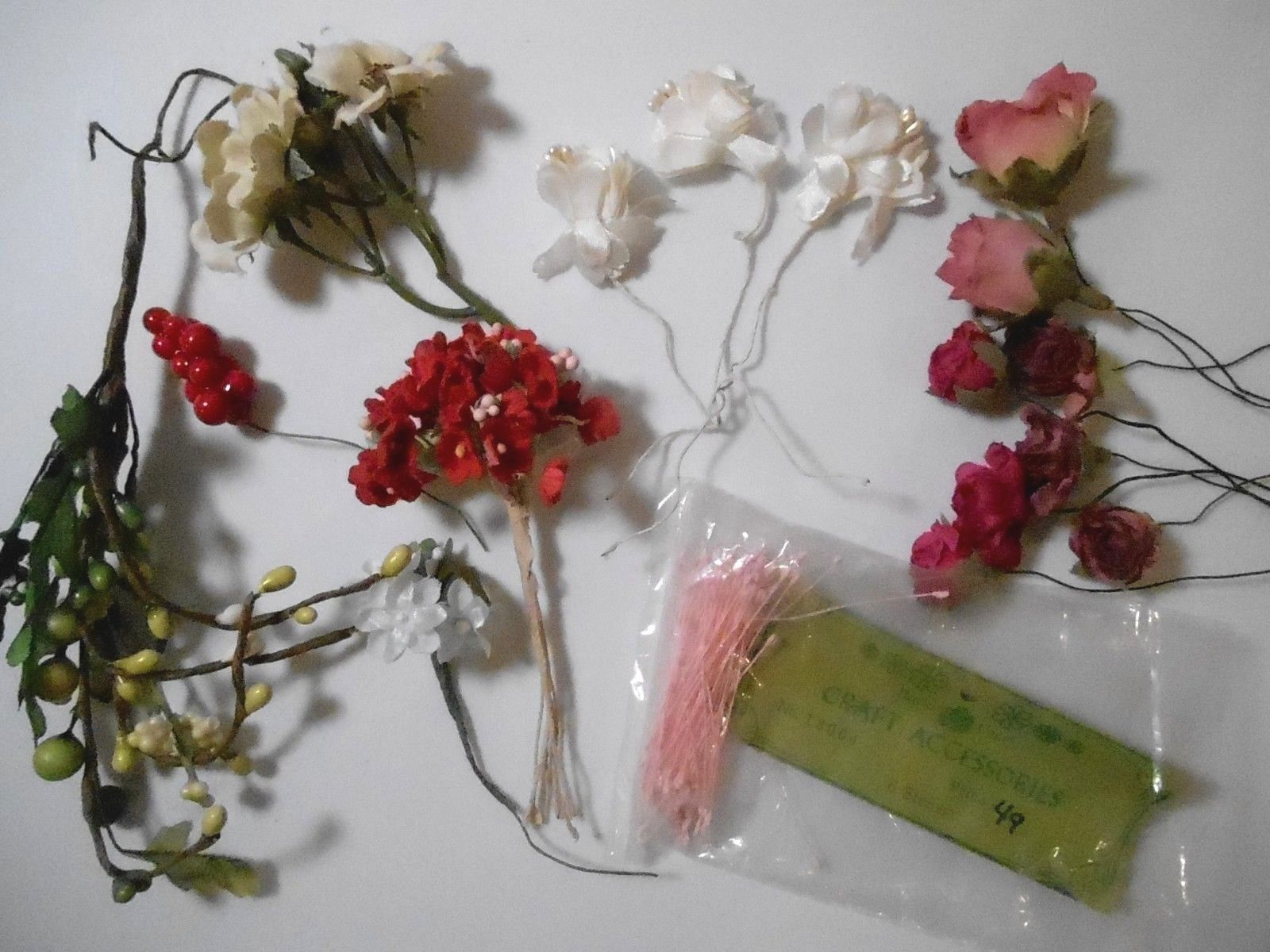Title (ebay affiliate link): Vintage Rose, forget me nots, Flowers, pips Millinery Dolls Hats Crafts Lot