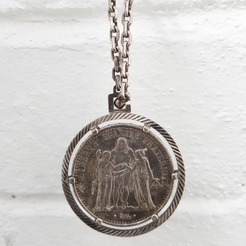 Title (ebay affiliate link): AMAZING KEY CHAIN MADE FROM AN ANTIQUE SILVER FRENCH COIN SET ON 925 SILVER 37g