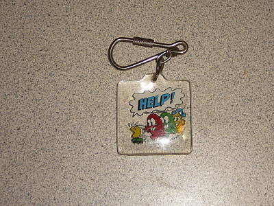 PAC MAN PACMAN VINTAGE KEYCHAIN 'HELP' GHOSTS