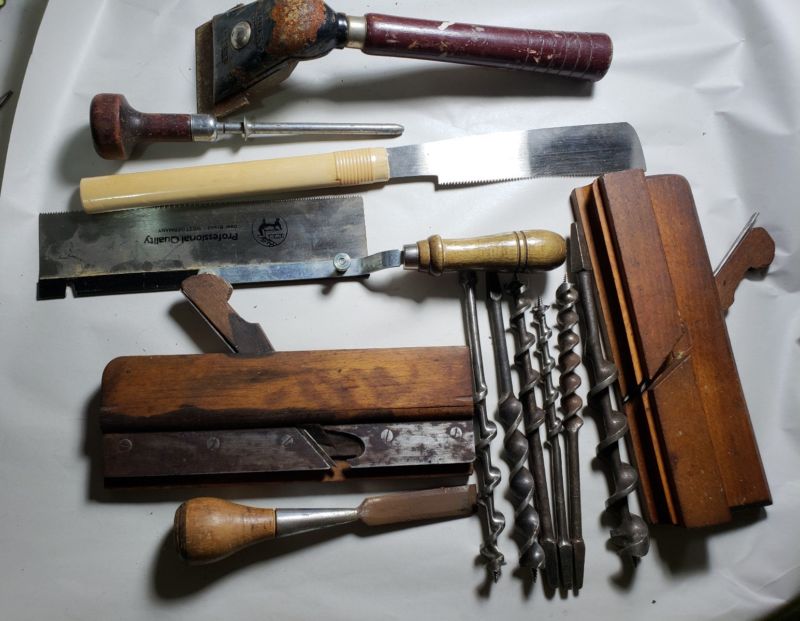 Title (ebay affiliate link): Vintage Lot Of Carpenter Tools Antique Woodworking plane drill bits chisel saw