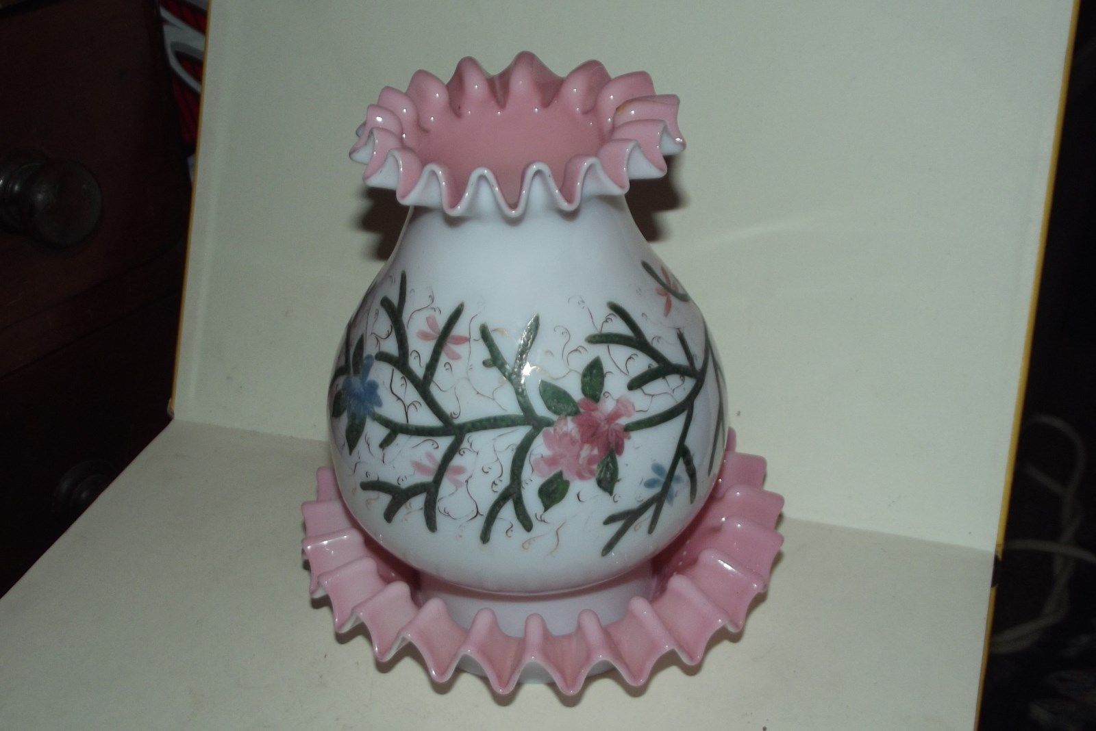 ANTIQUE victorian GLASS Night light VERY PRETTY PINK WHITE MILK GLASS T LIGHT