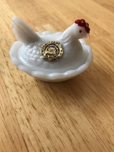 Vintage Westmoreland Small Milk Glass Hen Chicken On Nest White With Sticker
